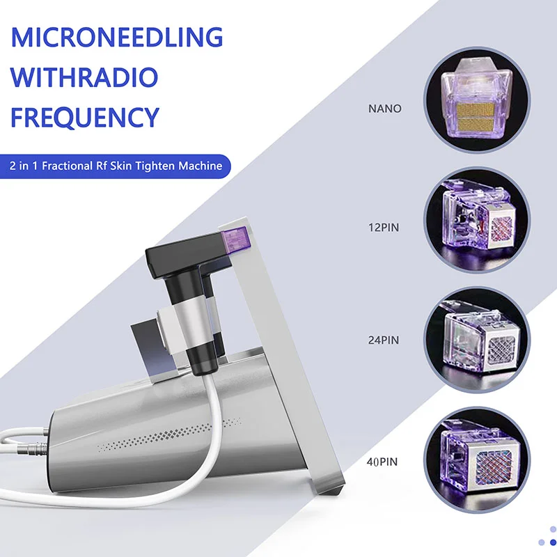 – Emisia de energie: Aparatul RF fracțional emite energie de radiofrecvență printr-o serie de microneedle care penetrează pielea. Aceste ace sunt echipate cu electrozi care transmit energia.