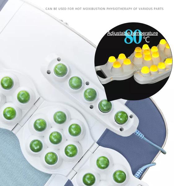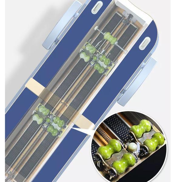 – Partea superioară a spatelui: 5 role de jad calde plus două tappere pentru întregul masaj lombar. Reglarea înălțimii rolelor pentru reglarea intensității masajului. 4 role de jad calde pentru masajul picioarelor;