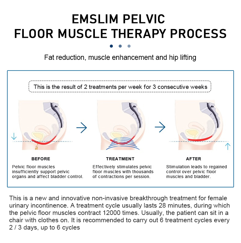 Acesta este un nou tratament inovator non-invaziv pentru tratarea incontinenței urinare la femei. Un ciclu de tratament durează de obicei 28 de minute în care se produc 12.000 de contracții în mușchii planșeului pelvin. De obicei, pacienții pot sta pe scaun complet îmbrăcăți. Se recomandă să ai 6 cicluri de tratament la intervale de 2/3 zile, pentru maxim 6 cicluri.